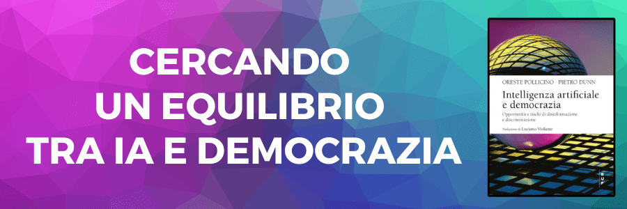 Dall’Europa alla Cina, passando per gli Stati Uniti: gli ultimi mesi si sono caratterizzati per una vera propria (rin)corsa alla regolazione del nuovo ecosistema digitale, rivoluzionato dall’avvento di un’intelligenza artificiale che rappresenta una miscela esplosiva tra opportunità di crescita – economica, tecnologica e scientifica – e rischi per la società e la democrazia. Fenomeni come la disinformazione e la discriminazione algoritmica possono infatti minare nel profondo i pilastri su cui si fonda lo stato di diritto, ma la loro regolamentazione non appare affatto semplice. Come trovare, quindi, il giusto equilibrio tra “Intelligenza artificiale e democrazia”? A questa domanda tenta di rispondere il nuovo saggio di Oreste Pollicino e Pietro Dunn, edito da Bocconi University Press e da pochi giorni in libreria.